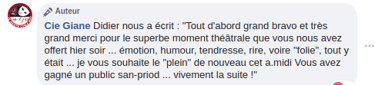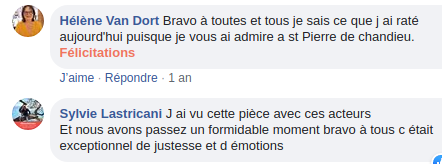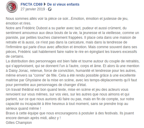 Pièce jouée en janvier 2019 à Saint Pierre de Chandieu (69), et en mars 2019 à la MJC Jean Cocteau de Saint-Priest (69)