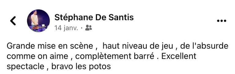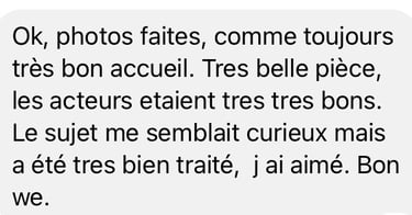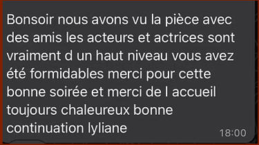 Pièce jouée en janvier 2024 à Saint Pierre de Chandieu (69) et à Saint Bonnet de Mure (69), en juin 2024 à St Quentin Fallavier (38) et en octobre 2024 à Saint Priest (69).